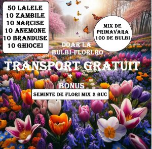 Pachetul special de 100 de bulbi de primavara contine o varietate colorata de flori care vor infrumuseta gradina dumneavoastra. redus de la 299.0 lei la doar 199.0 lei