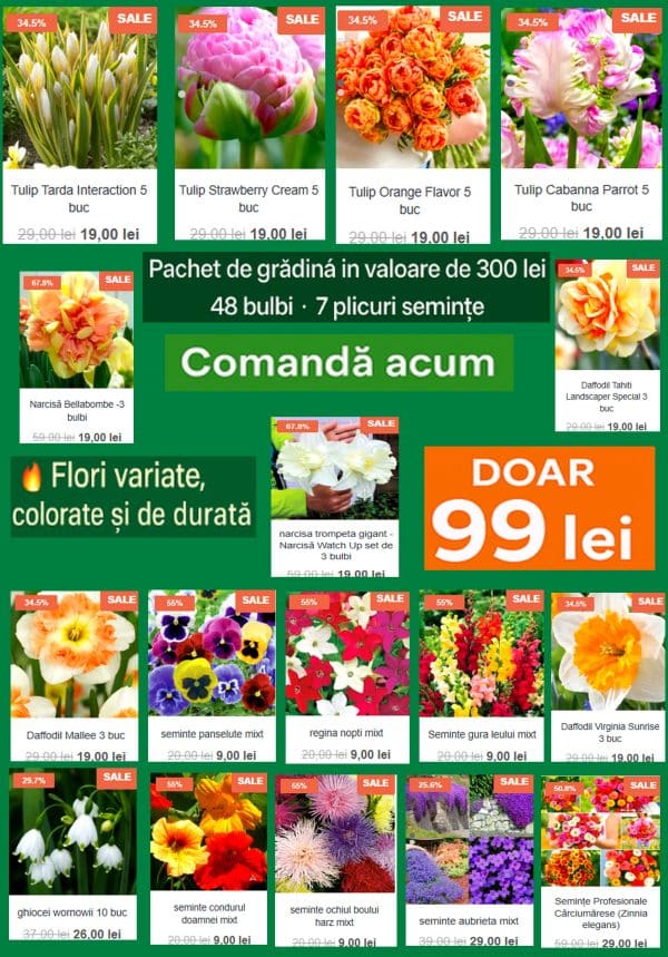 🌸 Pachet Bulbi & Semințe Flori (val. 300 lei → doar 99 lei)