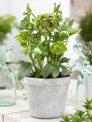 Double Ellen Green este o înflorire fermecătoare și rafinată. Cu flori mari, duble, verzi, împodobite cu un încântător pete de ciocolată în centrul fiecărei petale, aduce o notă de culoare neobișnuită și captivantă grădinii tale! Această plantă perenă rezistentă prosperă din februarie până în aprilie, afișându-și florile vibrante deasupra frunzelor veșnic verzi, piele, care ating cu grație o înălțime de până la 40 cm. Helleborurile sunt incredibil de ușor de cultivat, formând treptat aglomerări mici și prosperând în zonele cu lumină scăzută și umbroase. De asemenea, se pretează bine pentru grădinărit în containere, atâta timp cât primesc umiditate adecvată în timpul lunilor de vară și sunt împiedicate să se usuce.