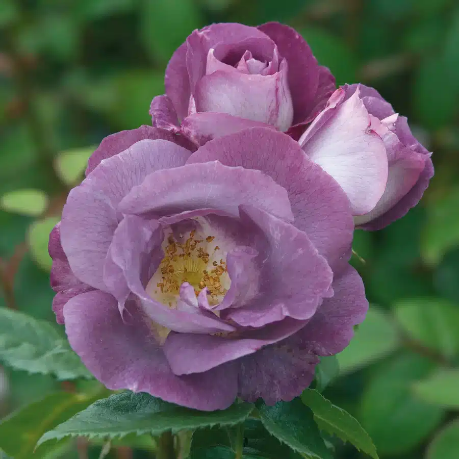 Mugurii lungi se deschid în flori semiduble cu stamine proeminente și un parfum dulce, amintind de violete. Inițial de un violet-mov intens, se estompează într-un albastru ardezie uimitor. Înflorește liber și aproape continuu. Creștere foarte sănătoasă, rotunjită. James, 2007.